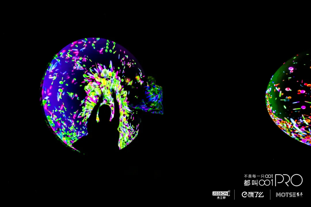 在神奇的“瘾秘空间”中,领略了光影交叠的舞蹈表演,舞者进行唯美的纱幔表演,屏幕上001PRO的艺术美感与极致工艺展现的淋漓尽致。